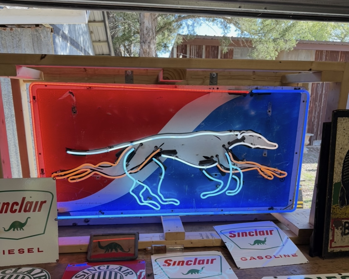Greyhound Neon Sign $4,750.00 Greyhound Neon Sign quantity Buy Now Categories: Neon Signs, Signs Related products Red Goose Shoes Neon Sign $9,500.00 Buy Now Texas Longhorn Sign $1,500.00 Buy Now Shakes Neon Sign $4,800.00 Buy Now Pevely Super Test Ice Cream Neon Sign $4,000.00 Buy Now All purchased items have a 15% Buyer’s Premium added.